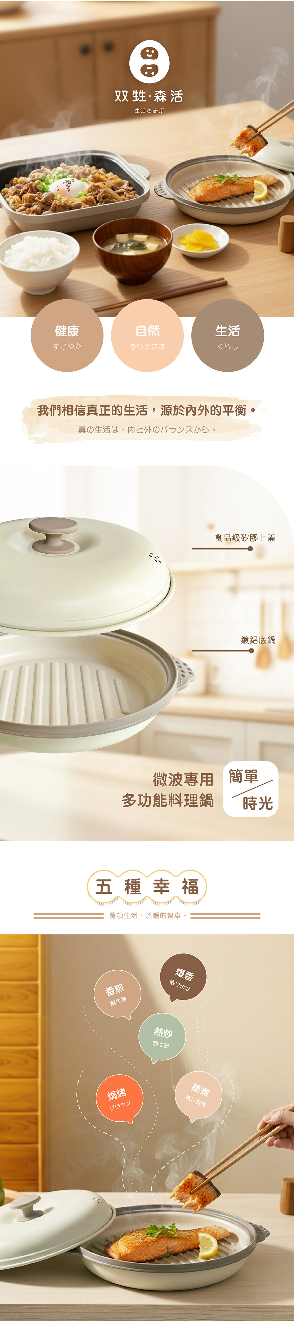 双甡微波專用多功能料理鍋|長型2件組(双圓烤盤)